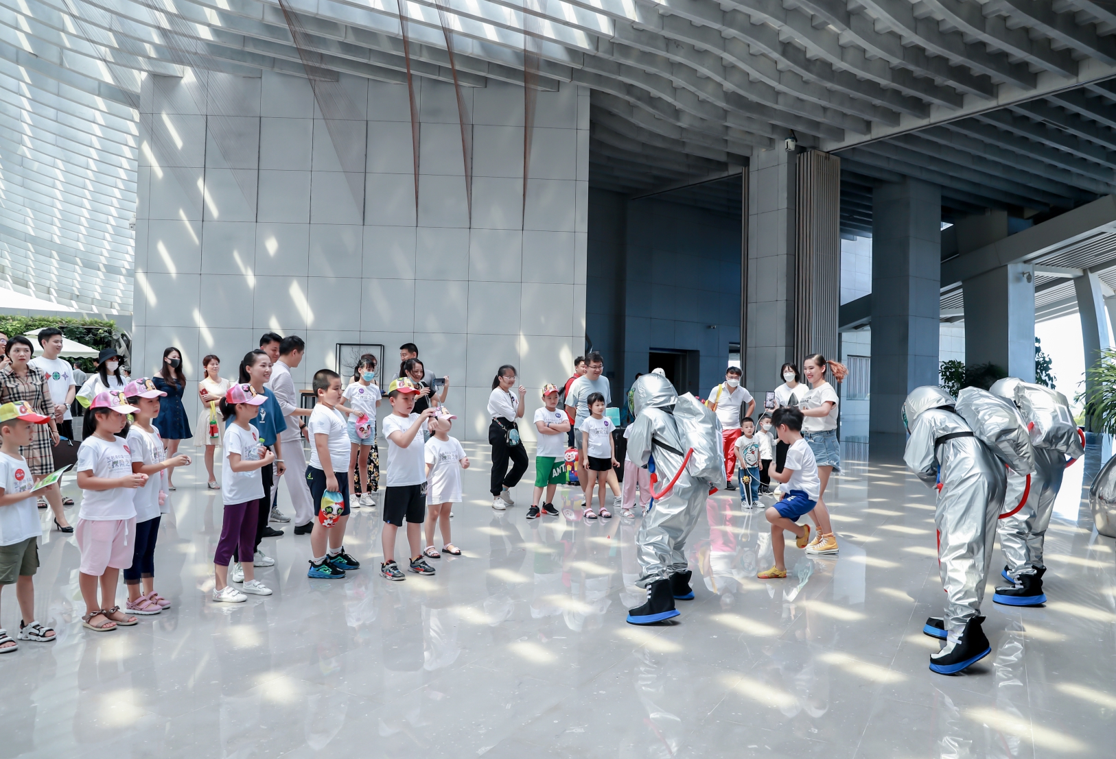 伴隨著涼爽的海風,三位身穿太空服的“宇航員”為小朋友們帶來了一場別開生面的舞蹈,拉開了探險之旅的序幕。小朋友參觀了酒店18樓代表著勇敢、善良、感恩、自省的四個星際聯盟主題親子套房;在稻草人農莊里玩“光影尋寶”游戲;在未來塔草坪上進行了家庭親子接力賽和小小賽車手及手搖船競賽,讓大家在比賽中收獲了滿滿的歡樂。
