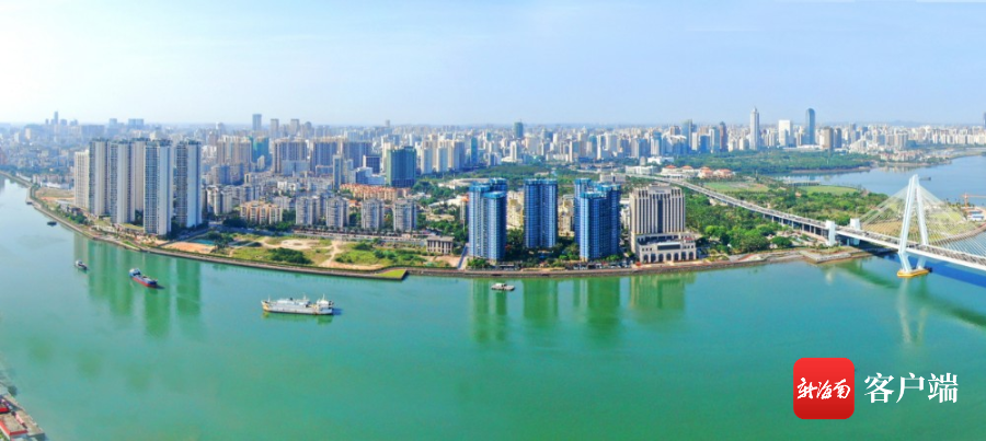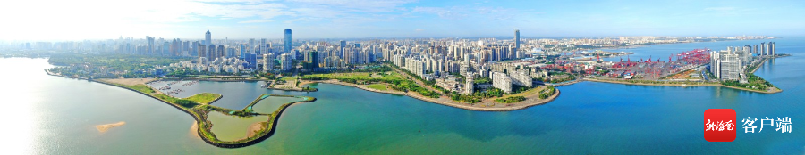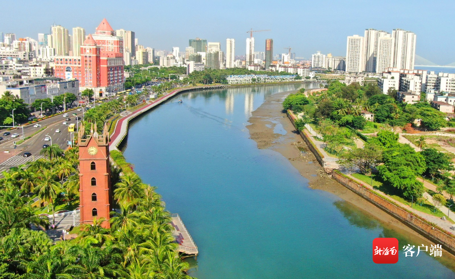 美麗海口灣,濱海新生活。經過升級打造的海口灣以嶄新的面貌出現在人們視野,6月4日記者從鐘樓到海口港,在空中多角度航拍海口灣。