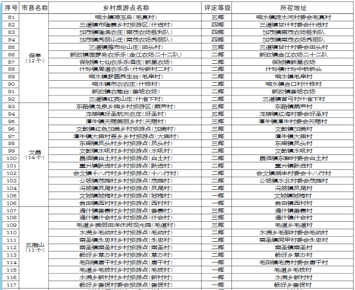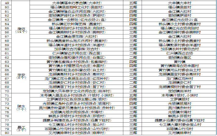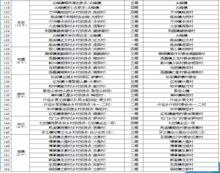 海南省椰級鄉村旅游點名錄