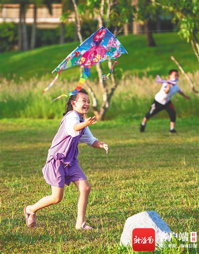 6月26日,海口鳳翔濕地公園,小朋友在興高采烈地玩耍,度過一個(gè)多彩的假期。 海南日?qǐng)?bào)記者 袁琛 攝