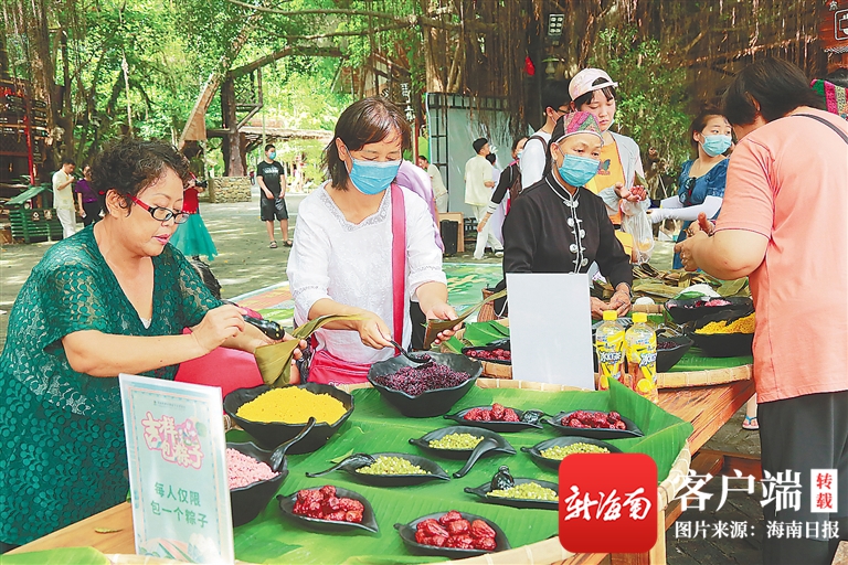 6月25日,海南檳榔谷黎苗文化旅游區(qū)舉辦多樣活動(dòng),包括端午祈福快閃、包黎家三色粽子、擲色子趣味游戲等。通訊員 潘達(dá)強(qiáng) 攝