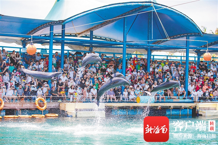 6月26日,游客在陵水黎族自治縣分界洲島景區(qū)觀賞海豚表演。該景區(qū)還推出住宿優(yōu)惠活動(dòng),讓游客更好地體驗(yàn)海島風(fēng)光。海南日?qǐng)?bào)記者 李天平 攝