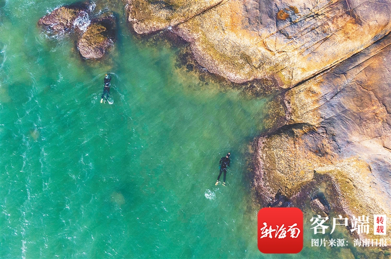 6月26日清晨,文昌市鋪前鎮(zhèn)木蘭灣海邊,來自海口的潛水愛好者在浮潛,暢享清涼。海南日?qǐng)?bào)記者 宋國強(qiáng) 攝