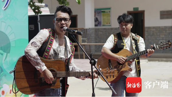村民身穿黎族服飾站在村口高唱黎歌歡迎游客。白沙融媒體中心供圖