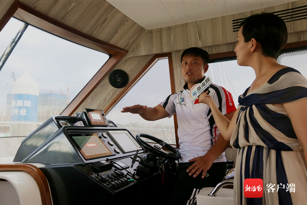 南海網(wǎng)主播帶您打卡亞洲最大帆船基地,游艇教練介紹游艇的情況。記者陳望 攝