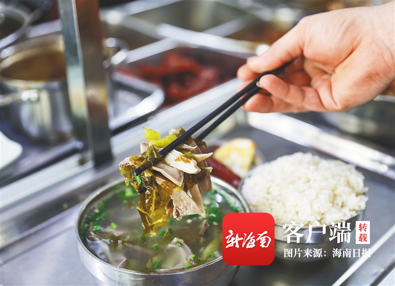“過去的人們干活苦,早上一定要吃得實實在在,才有力氣干活。”在熱鬧非凡的辣湯飯店里,老板娘陳大姐早已習慣了每天凌晨3點就起床煮湯的生活。她介紹,辣湯飯過去是海口開埠時期碼頭搬運工人的早餐,工人們都是天還沒有亮就要到碼頭出工,所以飯店要在開工前把食物準備好,才能夠滿足工人們補充體能的需要。