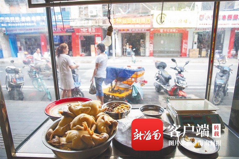 熙熙攘攘的新華南路,曾經是老海口的市中心。在這里生活的居民老蔡是地道的“老海口”,不想做飯的中午,到這條路上的肥婆蘭雞飯店,點上一份白斬雞、一碟小菜,再配上一碗雞油飯,就是最“順口”的午餐。