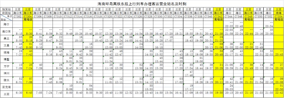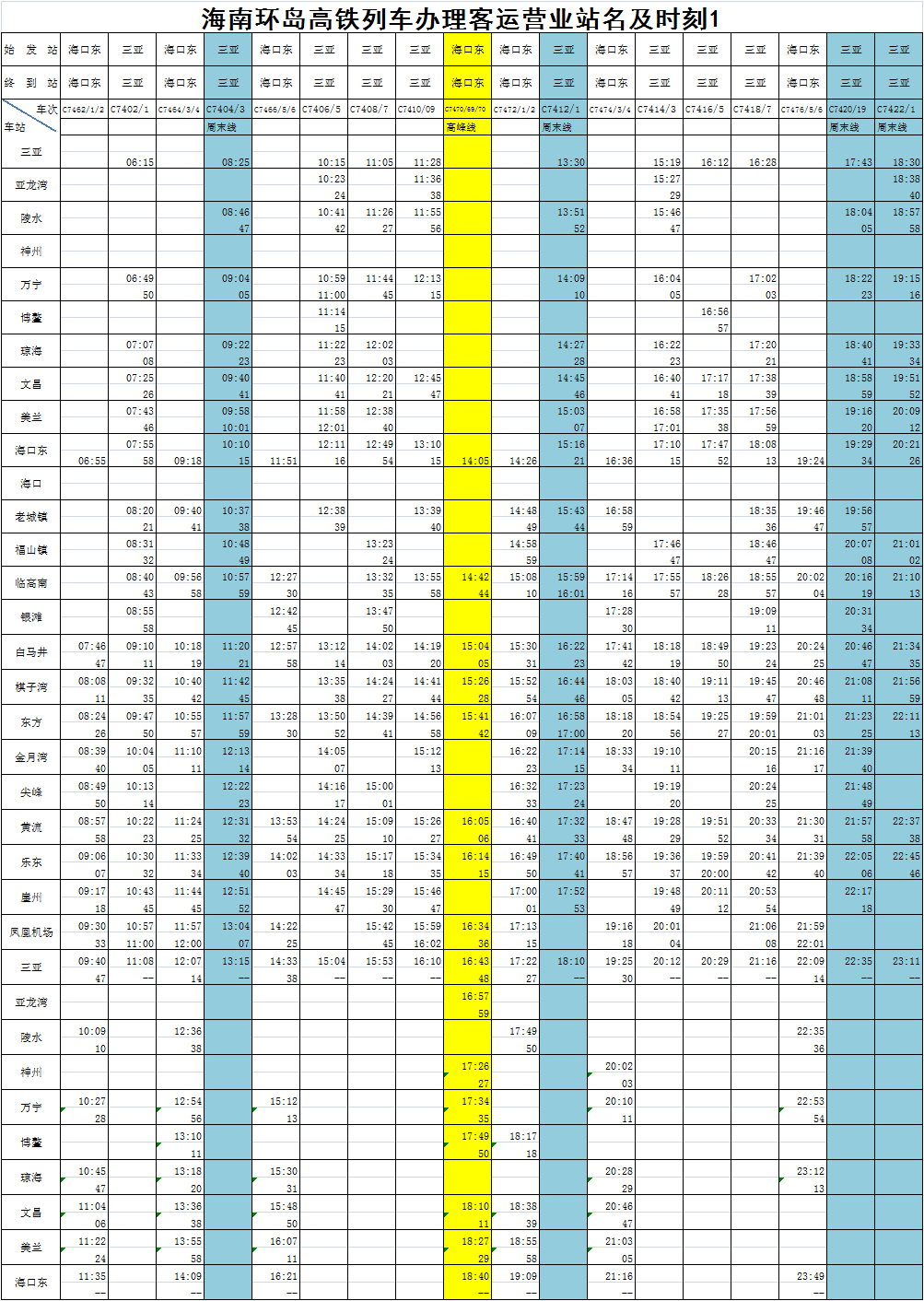 新海南客戶端、南海網(wǎng)、南國都市報7月9日消息(記者 王小暢 通訊員 符轉(zhuǎn))9日,記者從海南鐵路海口車務(wù)段了解到,為更好滿足旅客出行需求,海南環(huán)島高鐵、海口市郊列車將于7月10日零時起實施新列車運行圖。