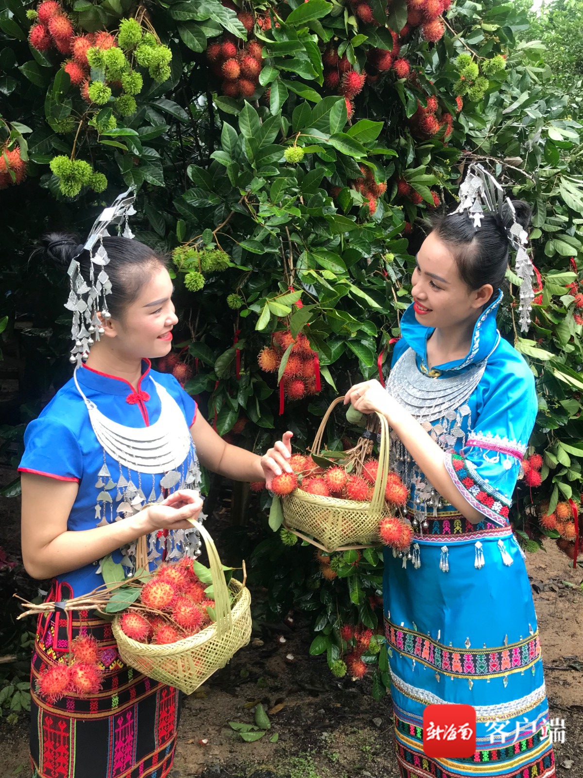 黎苗姑娘展示剛采摘下來的紅毛丹。記者 林師堂 攝