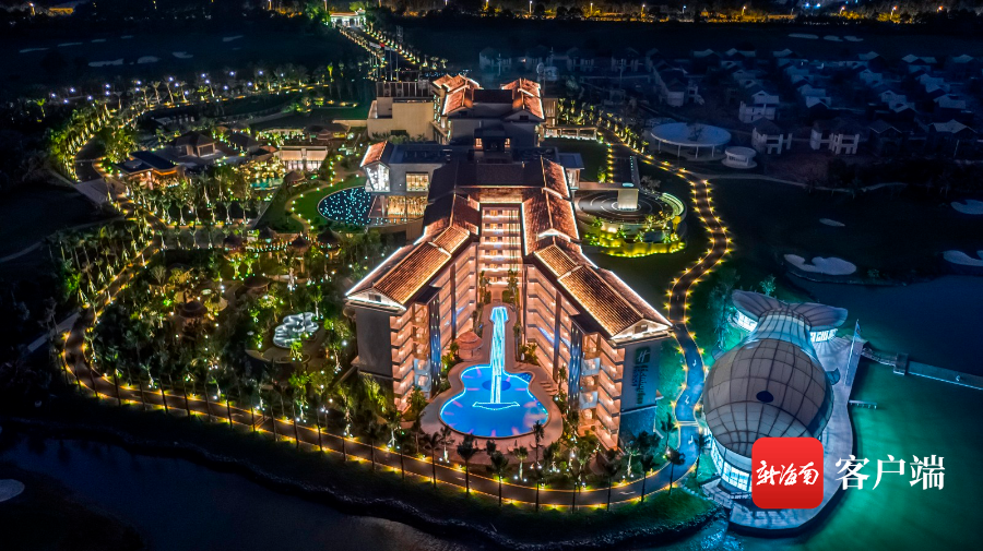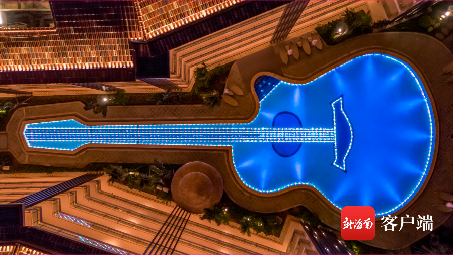 記者了解到,該泳池位于瓊海官塘的一家酒店,由于設計為吉他形狀,在晚上燈光照射下,泳池顯得光彩照人。
