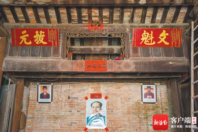 在許家老宅祖屋盡頭的香火室里,海南日報記者看到兩塊高懸的紅底金字牌匾,牌匾上分別寫有“文魁”“拔元”等字樣。