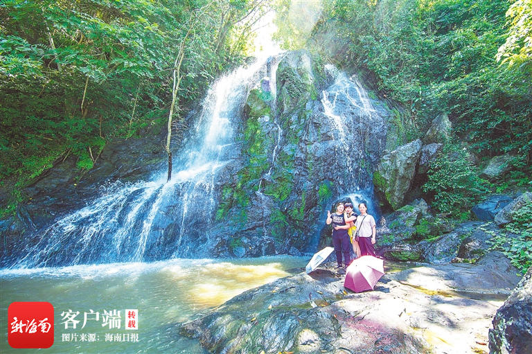 近日,儋州市雅星鎮東山居響水瀑布美景吸引游客前來觀光游覽。