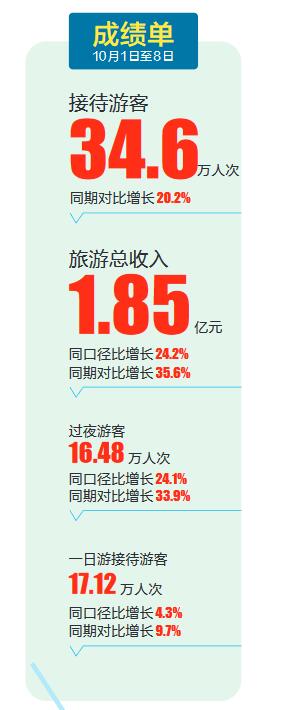 瓊海市旅文局消息,今年國慶中秋8天假期,瓊海市共接待游客34.6萬人次,同期對比增長20.2%,實現旅游收入1.85億元,同口徑對比增長24.2%,同期對比增長35.6%,過夜人數16.48萬人次,同口徑對比增長24.1%,同期對比增長33.9%,一日游接待游客17.12萬人次,同口徑對比增長4.3%,同期對比增長9.7%。