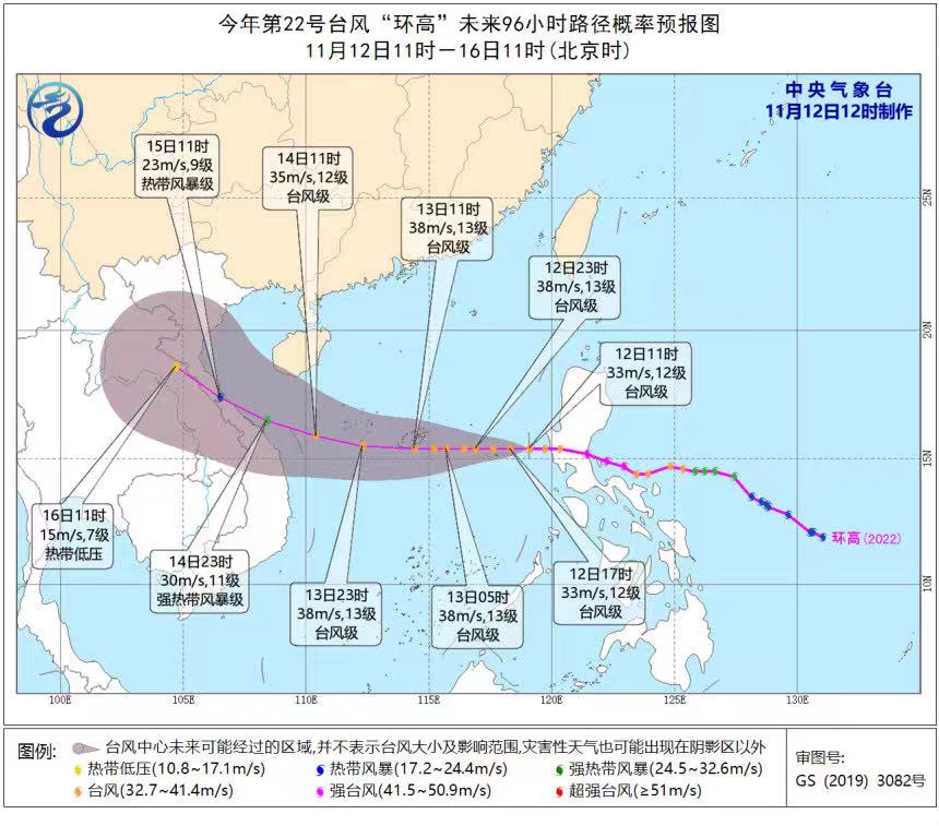 臺(tái)風(fēng)“環(huán)高”11月12日11時(shí)預(yù)報(bào)路徑圖