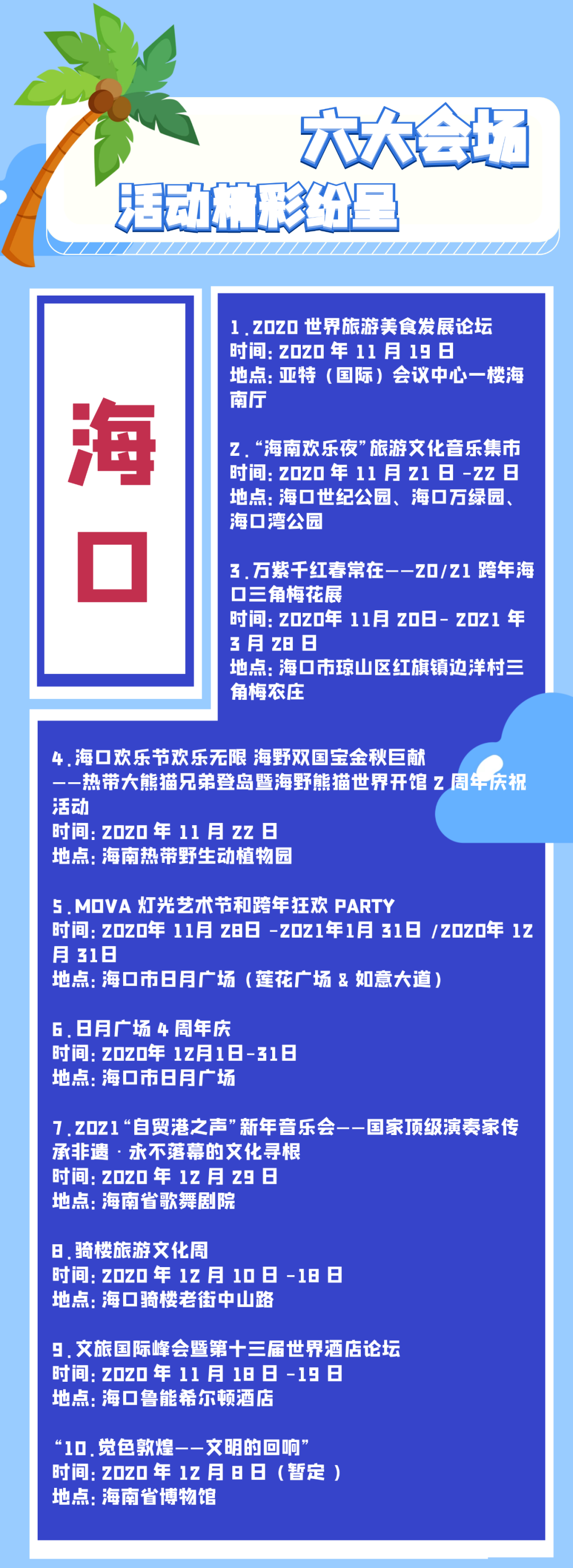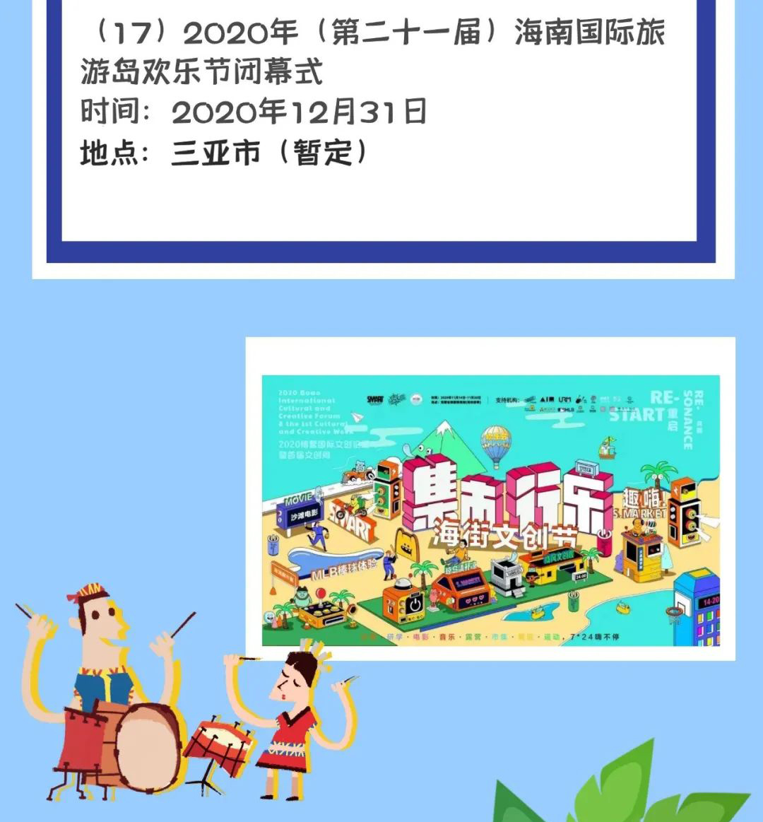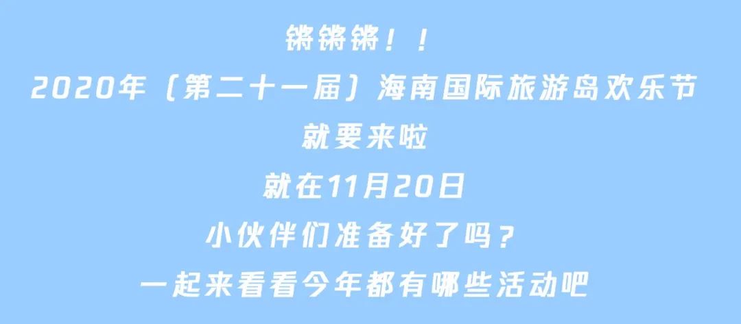 新海南客戶端、南海網、南國都市報11月19日消息(記者鐘圓圓)一年一度的海南國際旅游島歡樂節來咯!11月20日,2020年海南國際旅游島歡樂節將正式啟幕。整個活動將持續至12月31日,來海南,帶你暢玩一個月。