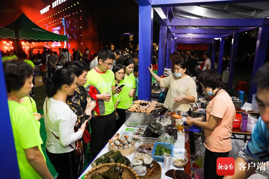 陵水酸粉、長沙臭豆腐、陜西肉夾饃……擼著烤串,喝著啤酒,在舞臺下和歌手互動是一種什么體驗?在濱海夜市集的現場,市民游客可以輕松解鎖這樣的特別體驗,因為這里吃喝玩樂“一網打盡”。