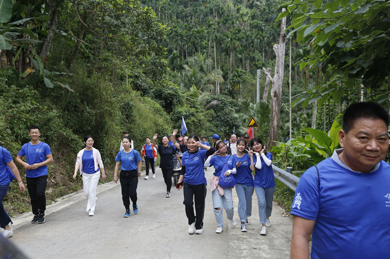 8時(shí)30分許,徒步隊(duì)伍從五指山市三月三廣場(chǎng)集結(jié)出發(fā),途徑三月三大道、泰翡路、太平水庫(kù)、太平村、新平村,一路欣賞優(yōu)美的自然風(fēng)光,在“天然大氧吧”里享受“醉氧”的酣暢淋漓,感受阿陀嶺的壯美與厚重,最終到達(dá)阿陀嶺的朱德亭觀山點(diǎn),整個(gè)徒步路線全程約13.5公里。參與健步的徒步愛(ài)好者中,有情侶,也有祖孫三代人,大家互相鼓勁,勇往直前,一起奔向幸福的終點(diǎn)站。