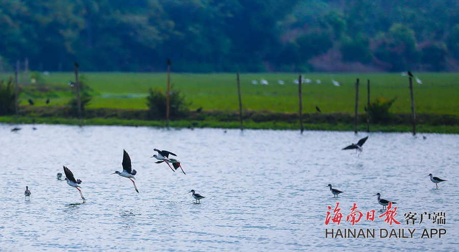 2020年12月9日,時下北方正寒冬,海南溫暖如春,過冬的候鳥紛紛飛來海口東寨港濕地棲息、覓食。