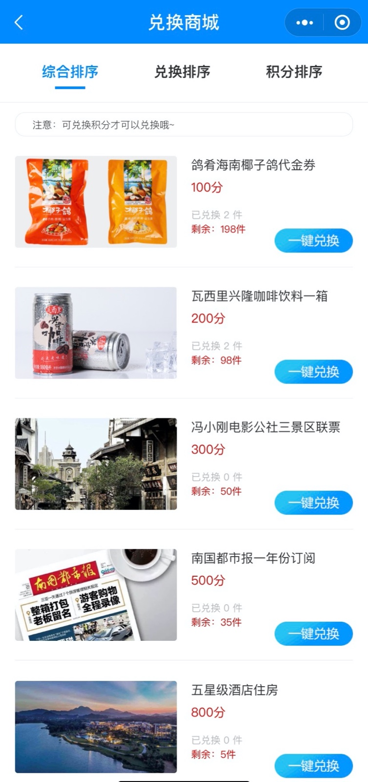 此外,糾錯隨手拍小程序積分兌換商城已于12月1日正式上架,100積分可兌換一份鴿肴海南椰子鴿代金券,200積分可兌換一箱瓦西里興隆咖啡飲料,300積分可兌換一份電影公社套票,500積分可兌換一年份南國都市報,800積分可兌換一間五星級酒店住房。同一用戶每樣獎品每月僅可兌換一次,兌換后可兌換積分減少,累計積分不變。獎品每月放出數量有限,先兌先得,兌完為止。
