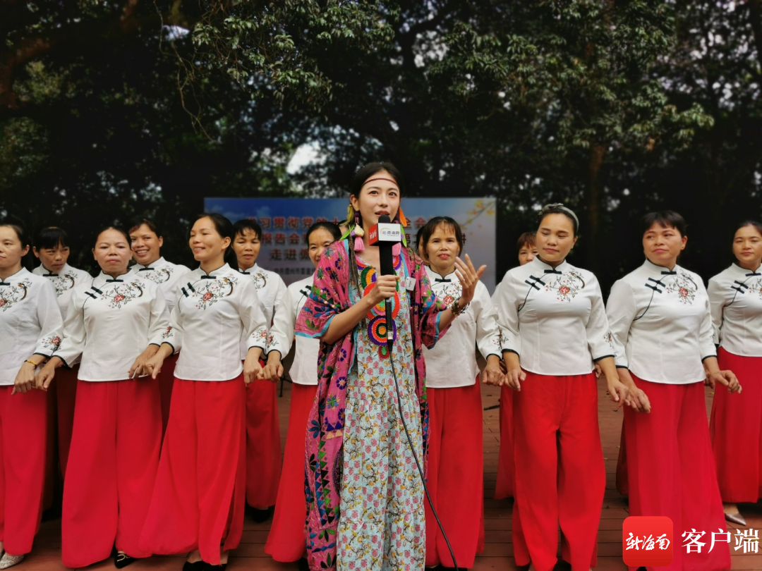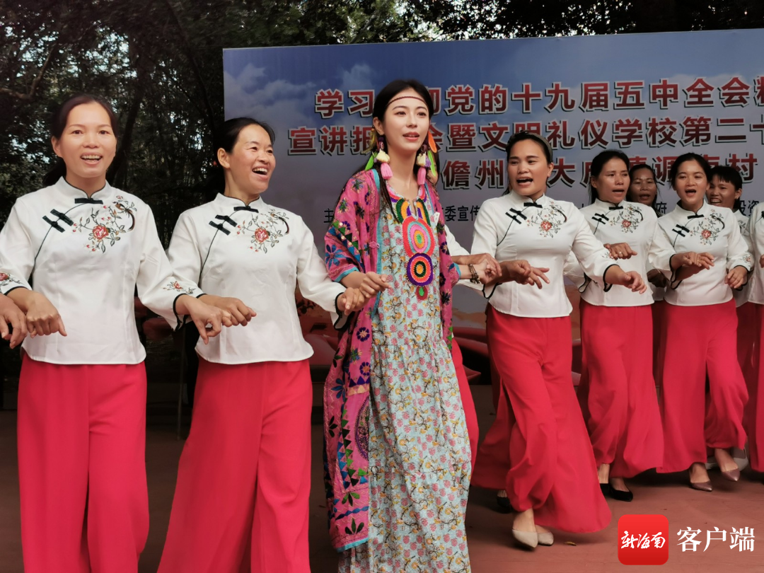 百萬(wàn)粉量級(jí)旅游達(dá)人邵約倫與村民互動(dòng),學(xué)習(xí)儋州調(diào)聲。記者 李紹遠(yuǎn) 攝