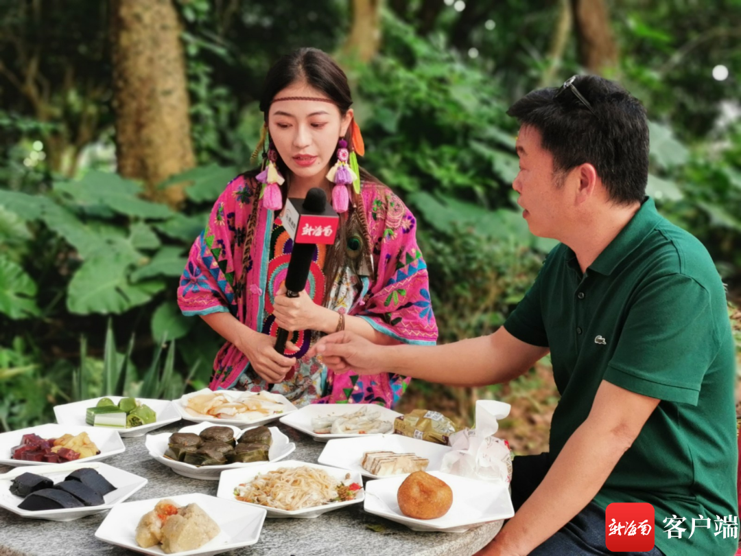?百萬(wàn)粉量級(jí)旅游達(dá)人邵約倫在儋州大成鎮(zhèn)調(diào)南村品嘗儋州美食,并進(jìn)行直播。記者 李紹遠(yuǎn) 攝