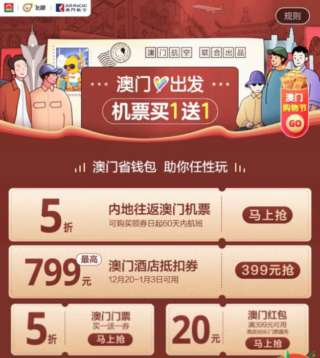 折上折!跨年旅游優惠加碼 飛豬“隨心飛”機票首次新增澳門專線