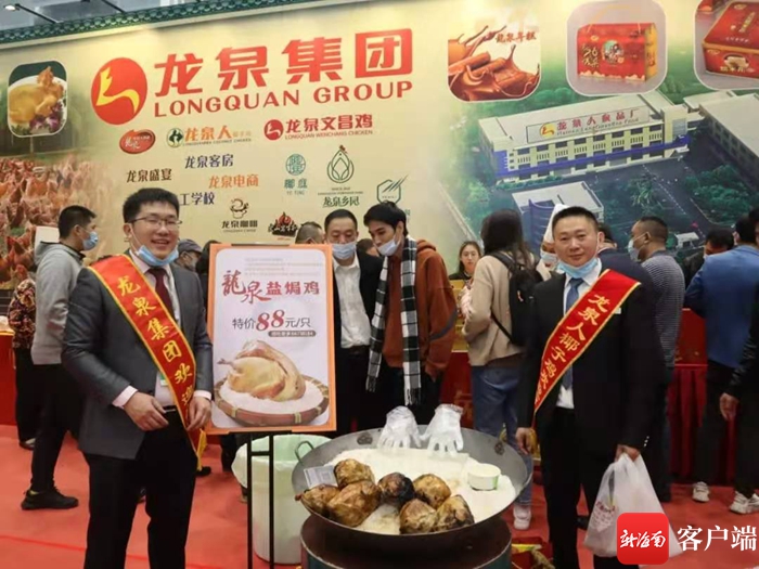 清甜的椰子雞湯、獨(dú)具海南特色的海南粉和抱羅粉、鮮嫩多汁的白切雞、營(yíng)養(yǎng)豐富的佛跳墻、香醇可口的龍泉咖啡及奶茶......走進(jìn)全國(guó)名優(yōu)農(nóng)產(chǎn)品館,遠(yuǎn)遠(yuǎn)便能看到海南龍泉展區(qū)的宣傳視頻。走進(jìn)一瞧,只見龍泉文昌雞、龍泉原味椰子雞、隔水蒸雞、龍泉年貨系列、龍泉椰子飯、龍泉鹽焗雞等特色產(chǎn)品應(yīng)有盡有,吸引了許多市民游客駐足品嘗。