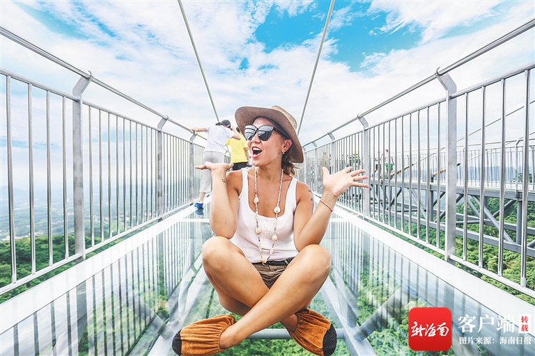 外國游客體驗(yàn)呀諾達(dá)景區(qū)高空玻璃棧道。 武昊 攝