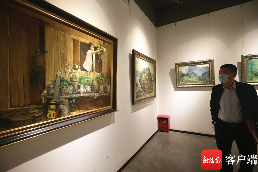“‘歲月回響?彩墨華章’謝耀庭從藝70年美術(shù)作品回顧展”在海南省書畫院開幕。記者陳望 攝