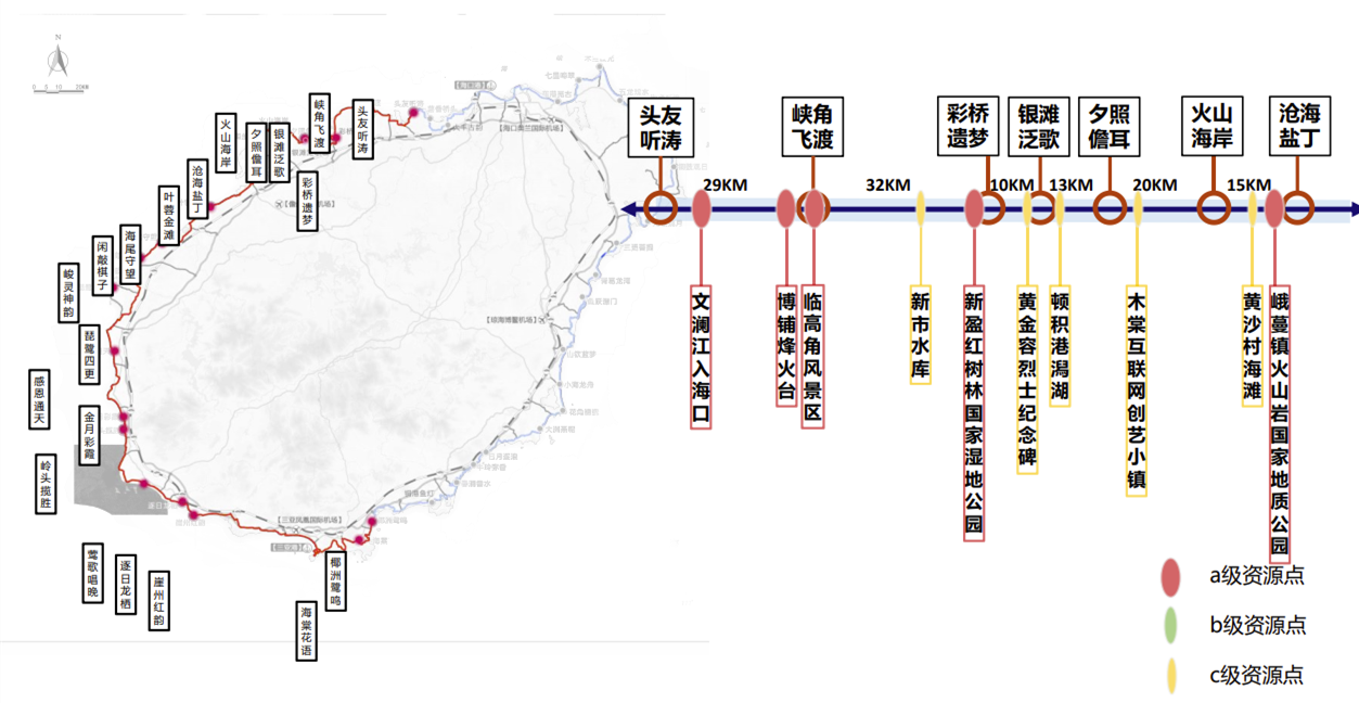 馬吉倩稱,環(huán)島旅游公路主要作用是串景,沿途的旅游資源就是這條項鏈上的“珍珠”。旅游公路建成后,可以構(gòu)建起“快進(jìn)慢游”的系統(tǒng),游客可以通過環(huán)島高鐵、環(huán)島高速快速地抵達(dá)旅游目的地,并進(jìn)入旅游公路構(gòu)建的“慢游”系統(tǒng)。游客可以在旅游公路上散步、騎車、自駕,遇到風(fēng)景時可在觀景臺駐足欣賞,還可以通過這條路的延伸,享受沿途的自然景點、人文景觀等,例如沿途的民宿、驛站、美麗鄉(xiāng)村、特色城鎮(zhèn)等。