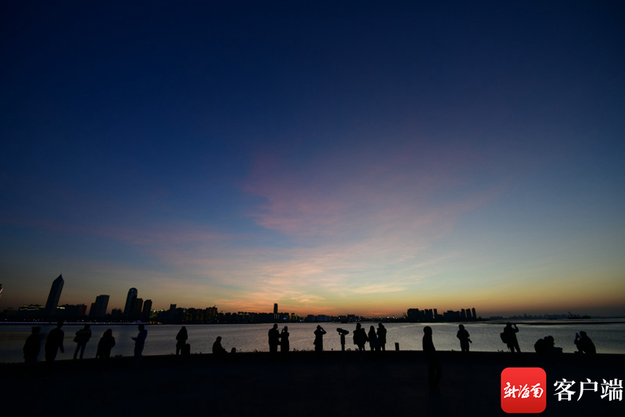 游客、市民在海口灣欣賞晚霞美景。記者 陳衛東攝