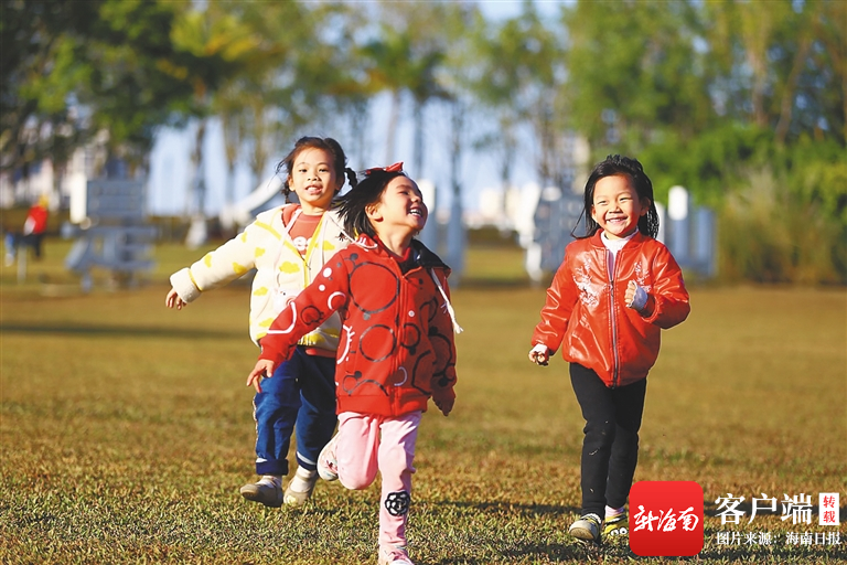 1月12日、13日,海口天氣轉(zhuǎn)晴。圖為12日幾位小朋友在海口市鳳翔濕地公園玩耍。