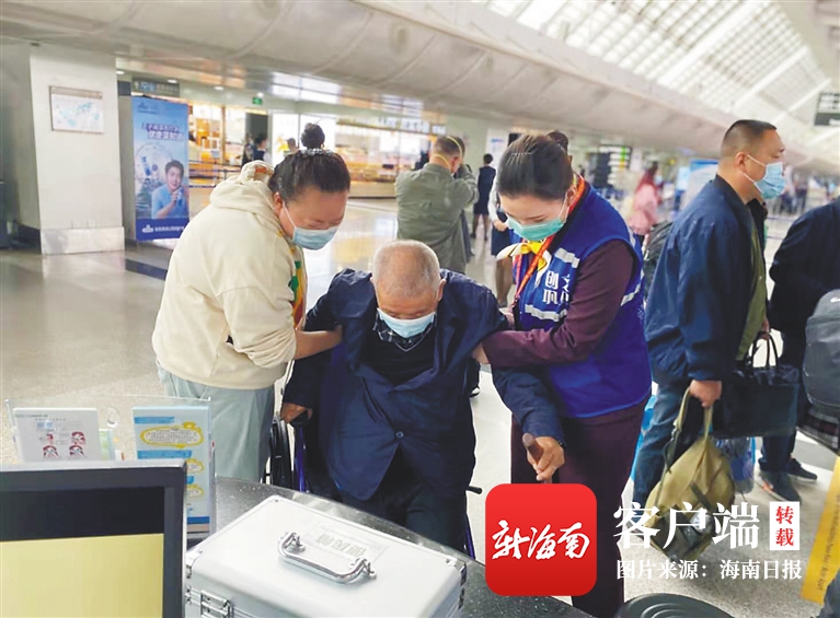 日前,在三亞鳳凰國際機(jī)場,機(jī)場工作人員正在攙扶行動(dòng)不便的老年旅客。三亞鳳凰國際機(jī)場近期在安檢、掃碼、行李寄存、飲食等方面推出系列出行服務(wù),為廣大旅客提供出行便利。