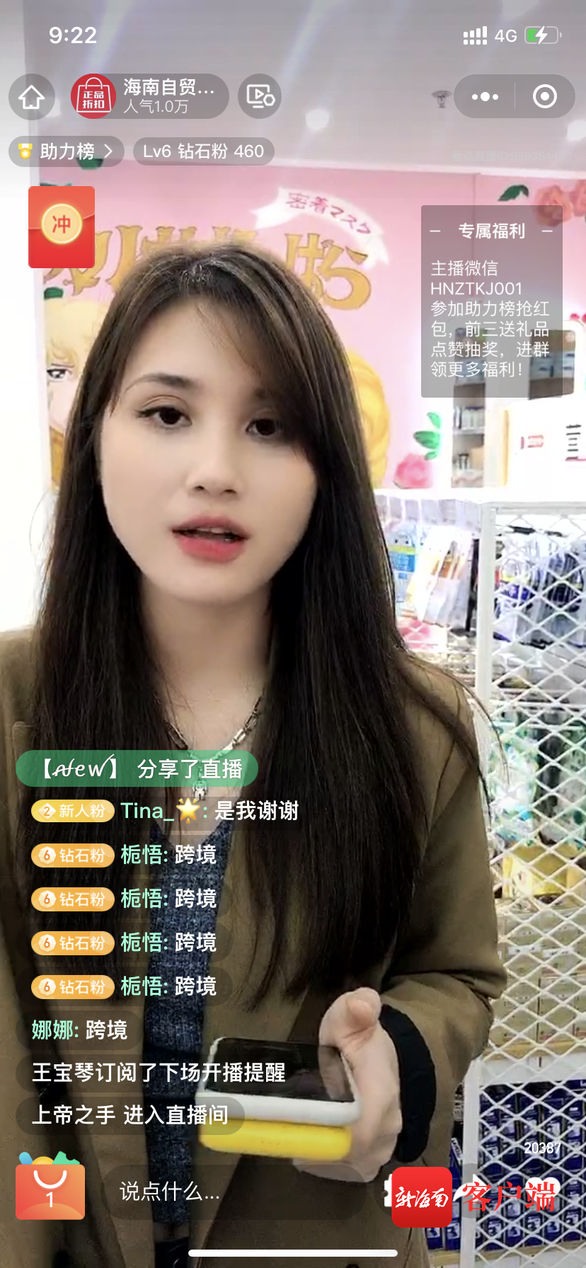 “大家在直播間打上‘年貨節’,點擊關注,就又能參與抽獎,免費獲得資生堂護手霜。”27日晚7時30分,海南跨境“美麗年貨”聯合直播正式開播,主播“七七”向網友拋出福利,引來大批網友涌入直播間。