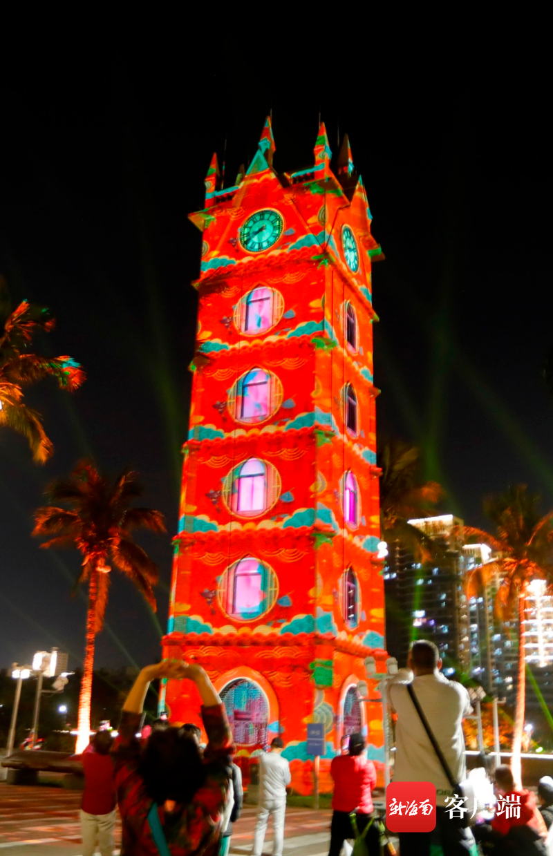 新海南客戶端、南海網(wǎng)、南國(guó)都市報(bào)2月11日消息(記者 汪承賢)2月11日,海口鐘樓上演辭舊迎新燈光秀,5D高科技技術(shù)將海口鐘樓打扮得美輪美奐。為在海南就地過(guò)年的人們送上視覺(jué)大餐。