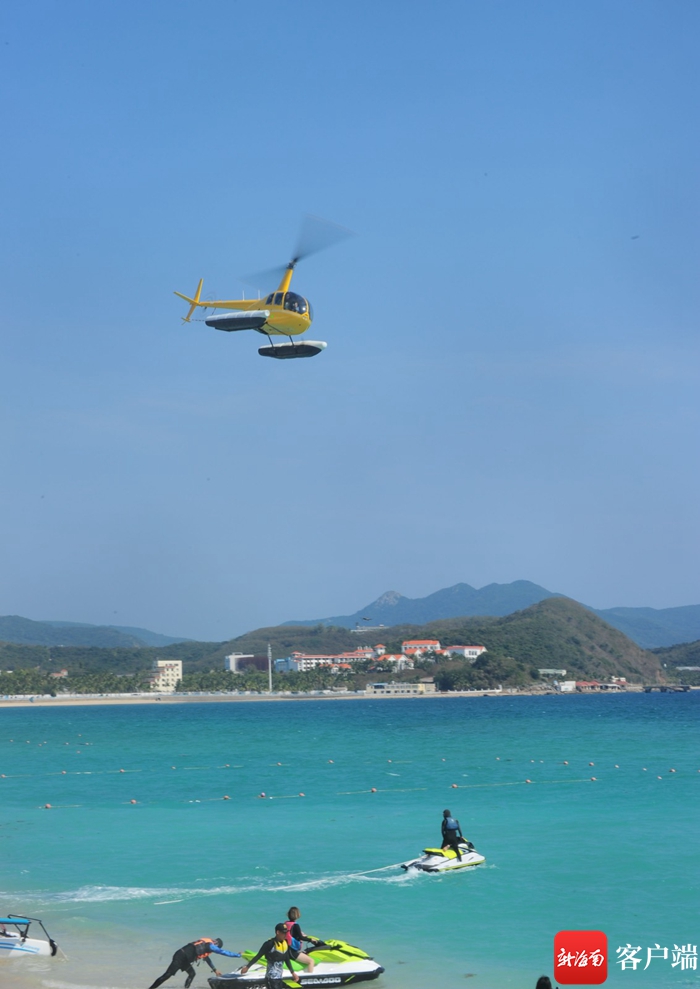 ?游客在三亞乘坐直升機觀光。記者 沙曉峰攝
