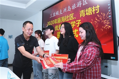 三亞蜈支洲島旅游區為2020年藤海社區、青塘村28名優秀高考學子頒發獎學金,助力學子們圓大學夢。 三亞日報記者 陳聰聰 攝