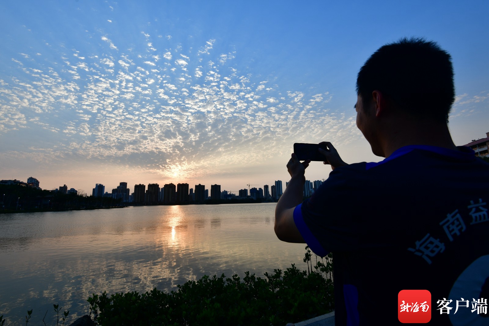 市民游客在海口紅城湖拍攝美麗天空。記者 陳衛(wèi)東 攝