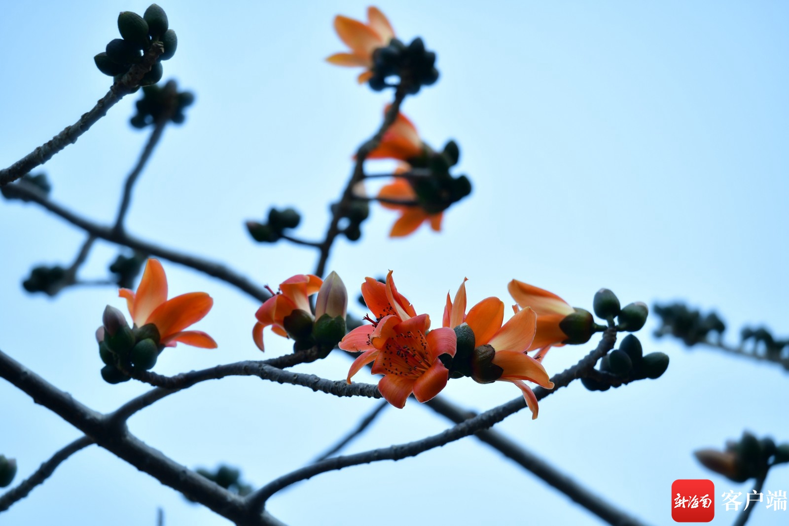 新海南客戶端、南海網、南國都市報2月26日消息(記者 陳衛東)2月25日,記者在海口市五指山南路看到,幾株木棉花已經悄然開放,由于樹種不同,大多數木棉花還是含苞待放。這些搶著開的木棉花像報春的使者,告訴大家春天來了。