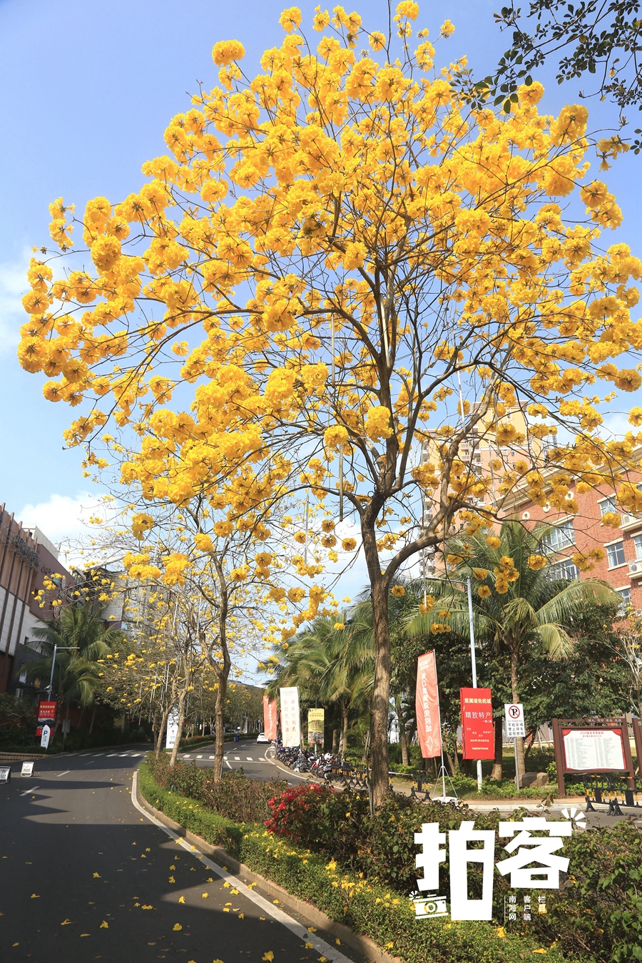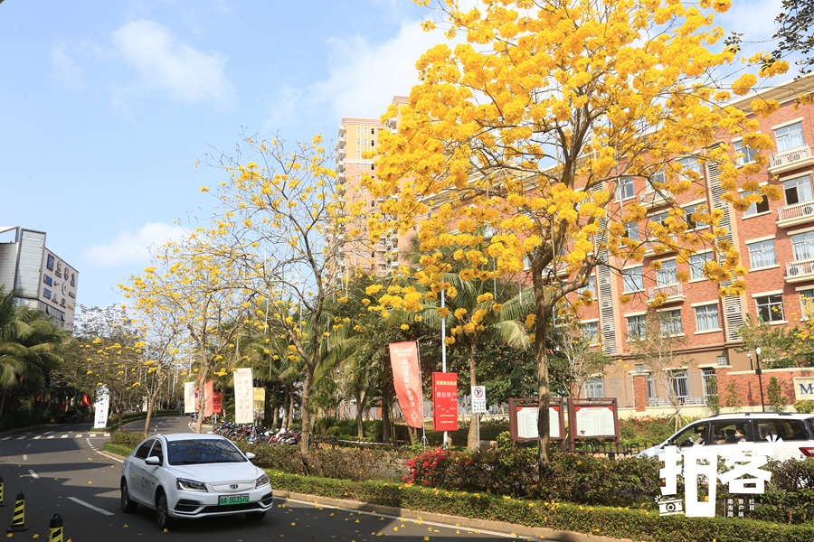 欣賞那里盛開的黃花風(fēng)鈴花與煙火花相映的美景。