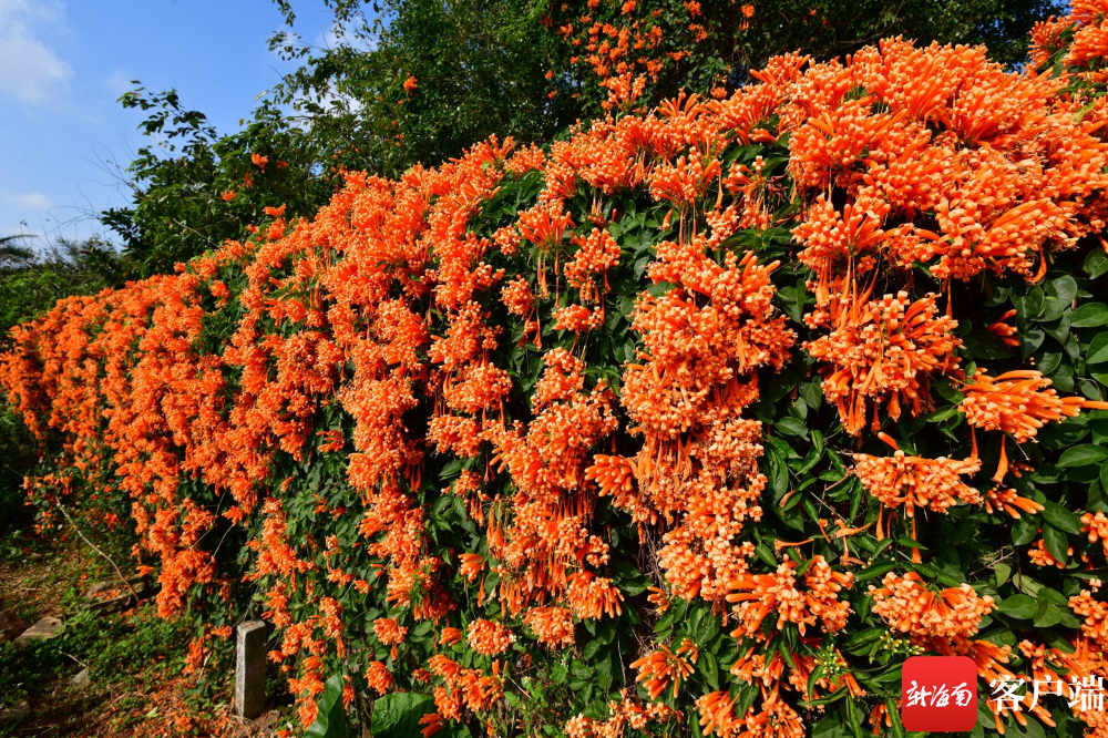 30多米長的圍墻,全被炮仗花覆蓋,