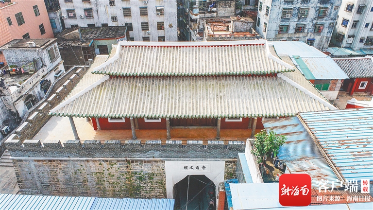 明清交替,鼓樓又有數十年無人問津,等到郡守張萬言主政時,瓊州儒林又一次遭遇了數年的顆粒無收,有人提醒張萬言,稱在前明時期,這樣的事情也發生過,何不效仿古人重修鼓樓,以振瓊崖學風。張萬言從善如流,捐出自己的俸祿重修鼓樓。近百年時過境遷,“斯樓之基址巍然尚在”,雖然那些飛檐城壁早已不復當年,但是靈應還在,鼓樓修好后,海南文士又重整旗鼓,在接下來的一次科舉考試中獲得了不錯的成績。也正是因為這樣,到了雍正年間,瓊州知府宗思圣大修鼓樓,就直接用“文明”為其命名,更在鼓樓上修建了一座文昌祠,內供魁星點斗像,保佑海南文脈興盛。此后,又有名士吳典等人多次修葺鼓樓,鼓樓的鐘鼓聲就這樣在府城回蕩,開鳴曉昏,陪伴了一代又一代人。