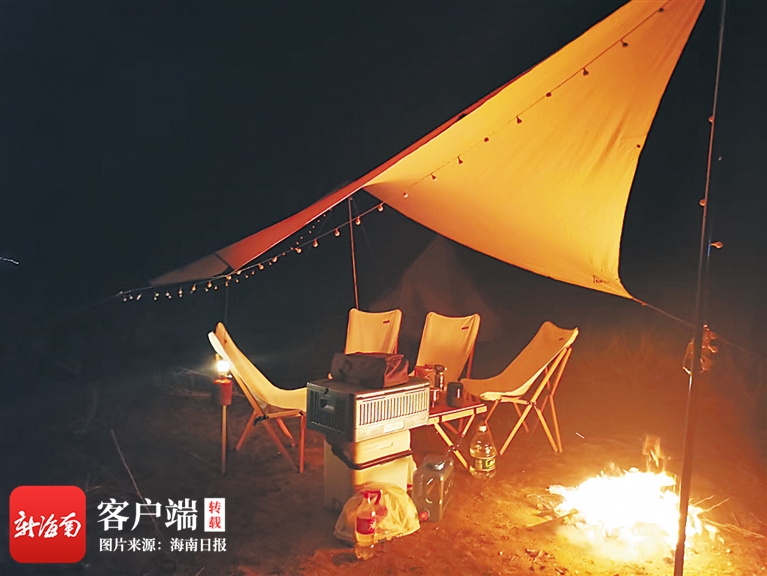 與水庫湖水相連的開闊草地、藏在鄉鎮山林間的村落、被蔚藍海水包圍的無人空地……海南這些地方成為邢略戶外露營的“秘密基地”,藏著他的快樂與冒險?!耙巴饴稜I是我的詩與遠方。”邢略說。