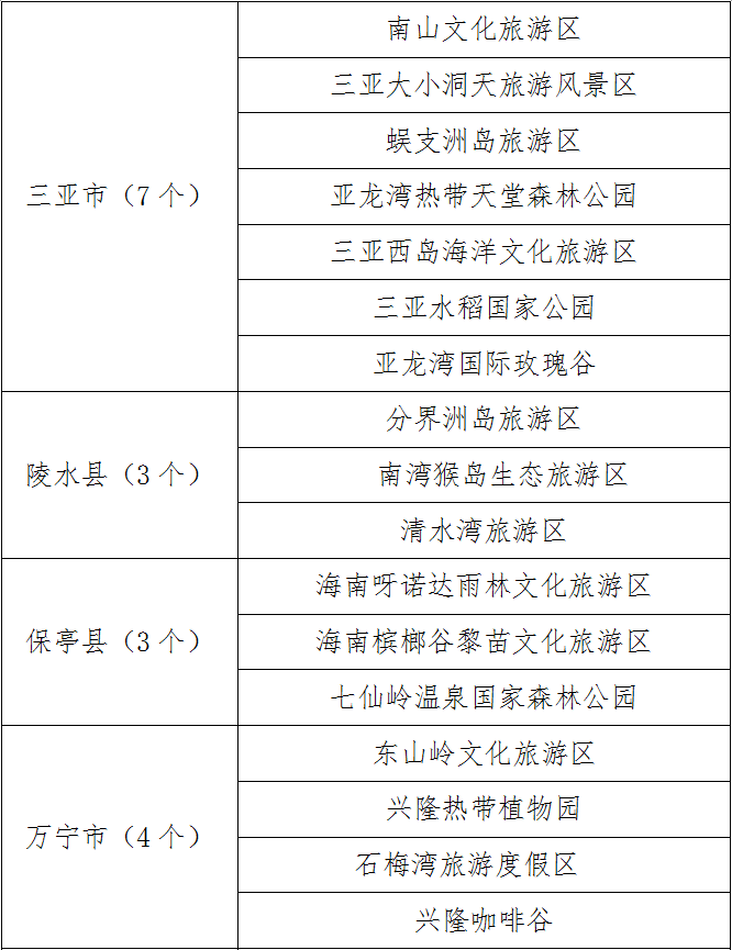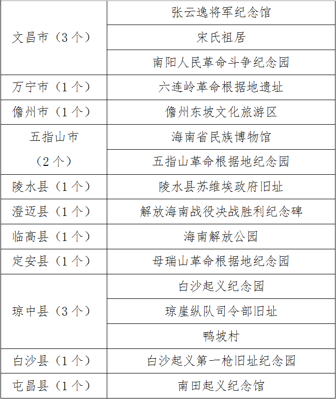 附海南省各市縣紅色旅游,藍色、綠色旅游景點(共71處)