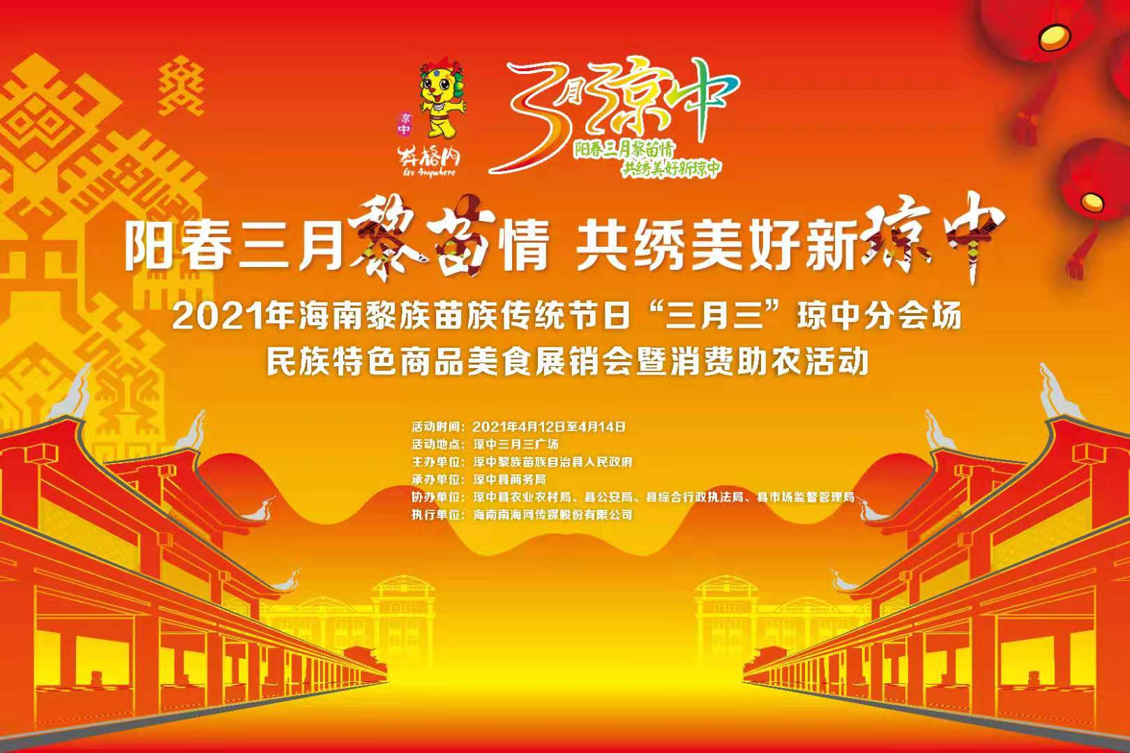 “三月三”瓊中分會場民族特色商品美食展銷會暨消費助農(nóng)活動,將于4月12日至14日,在瓊中三月三廣場將持續(xù)狂歡三天,為廣大群眾傾情奉獻一場美食饕餮盛宴。