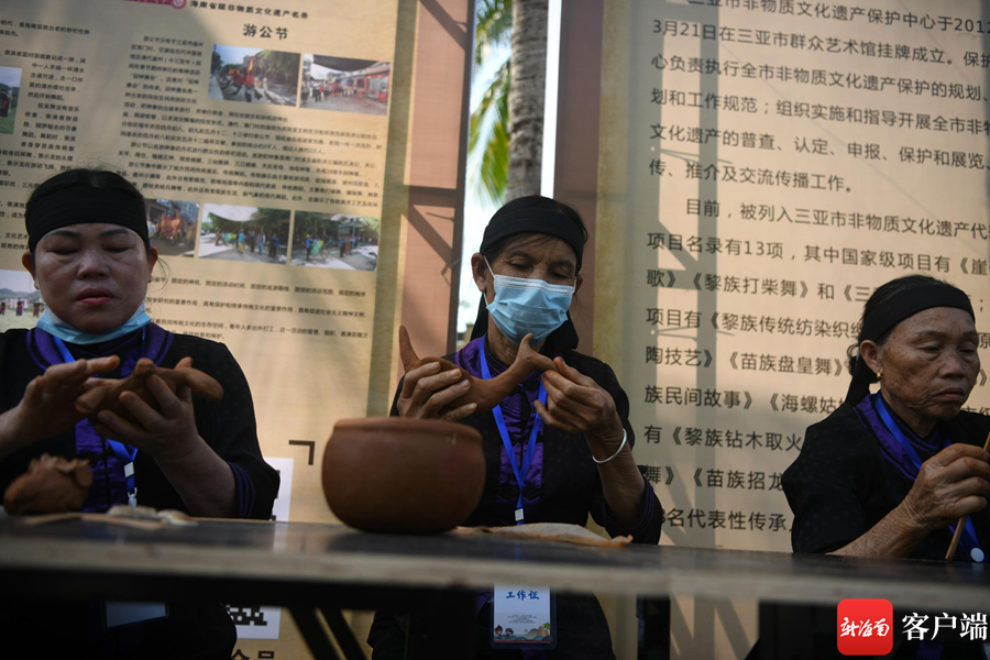 4月13日,黎族原始制陶技藝展示。記者沙曉峰攝