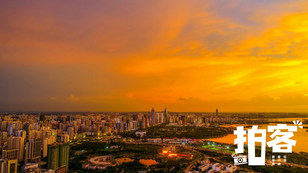 ????雨后的海口灣,夕陽映照天空,色彩好似油畫一般↓↓↓