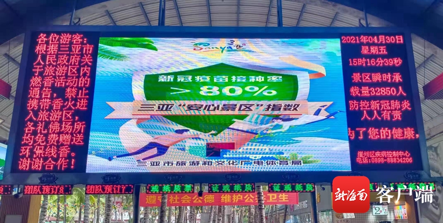 三亞景區的大屏幕上顯示“安心景區”指數。記者沙曉峰攝