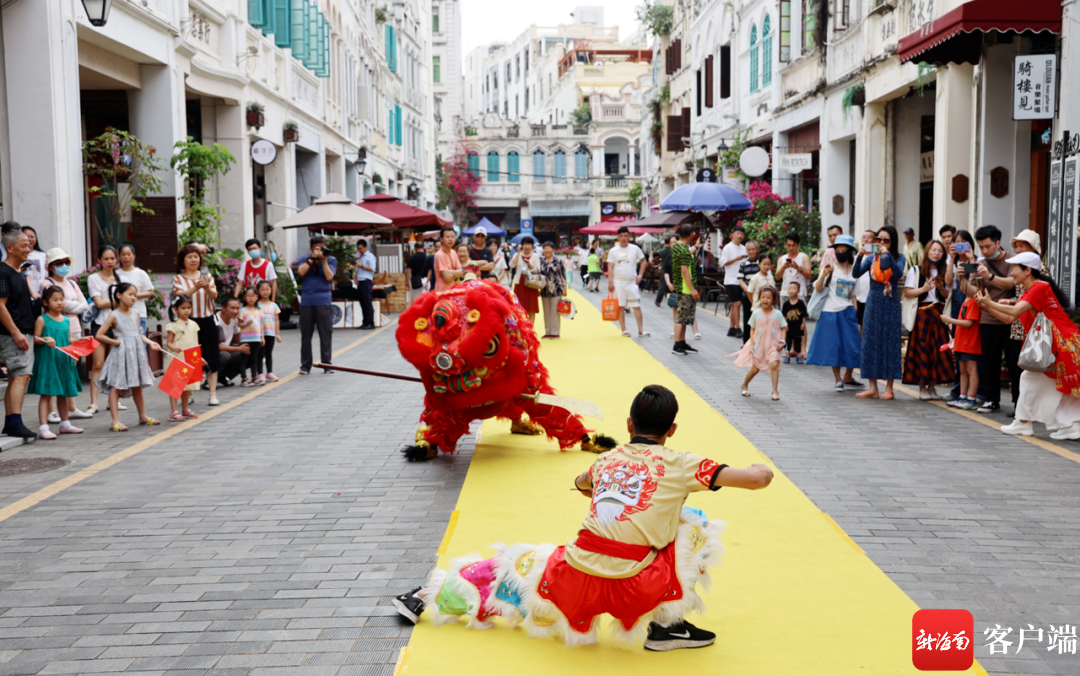 “咚咚鏘 咚咚鏘”……在騎樓老街中山路《獅王》主題立體特展活動現場,雄獅跟隨著鼓樂的節拍,踏板、采青、吐球、懸空躍起,實力演繹古老民俗也能煥發蓬勃朝氣?;铎`活現的雄獅,觀眾拍手稱絕!“醒獅很威武雄壯,我很喜歡看醒獅表演。”“ 原來獅子頭是這樣做出來的?!毙血{的傳統文化讓后生仔們興奮之情溢于言表。??隍T樓老街聚集著文創、輕食、民宿等業態,其中有不少已成為游客的網紅打卡點。游客既可以品嘗咖啡、雞屎藤、清補涼等當地小吃,還能賞花梨、沉香等工藝品。