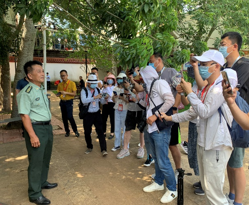 采訪團聆聽紅色娘子軍龐瓊花后人龐啟江介紹